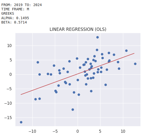 Estableciendo como variable independiente X la evolución de un índice de mercado durante un periodo de tiempo determinado y comparándolos con la evolución del producto que queramos analizar durante el mismo periodo, representando éste la variable dependiente Y, podemos decir que: