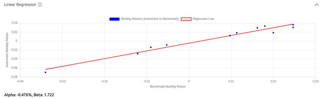 📊 Análisis de regresión: beta elevada y alpha negativa